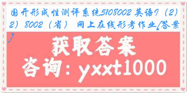 国开形成性测评系统5108002 英语I(2)8002(省) 网上在线形考作业[答案]相关练习题: