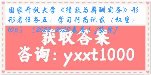 国家开放大学《绩效与薪酬实务》形考任务五:学习行为记录(权重:10%)(2022-2023春季)[答案]
