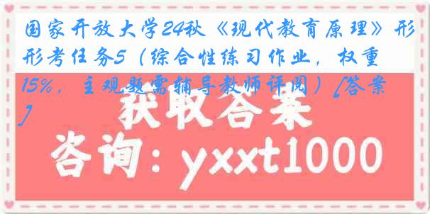 国家开放大学24秋《现代教育原理》形考任务5(综合性练习作业,权重15%,主观题需辅导教师评阅)[答案]相关练习题: