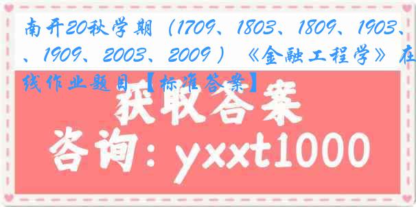 南开20秋学期(1709、1803、1809、1903、1909、2003、2009 )《金融工程学》在线作业题目【标准答案】